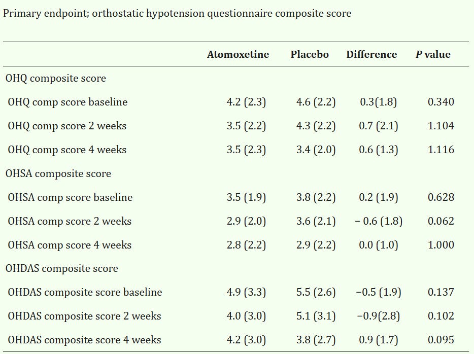 Also, the signs just randomly flip, with positive signalling lower scores in the atomoxetine arm, while in some endpoints, the opposite is true.